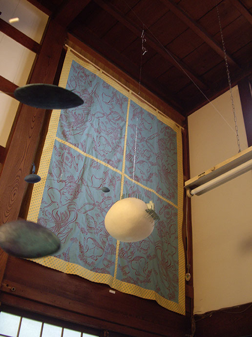 造形作家の姉歯公也氏の立体作品と私のオリジナルてぬぐい布地を使用し異空間に変化させた二人展。