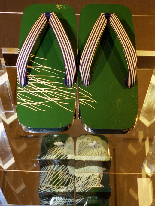 「下駄」に「半纏」を組み合わせて “木と布・漆と染”という異素材の組み合わせでビジュアル表現をした。