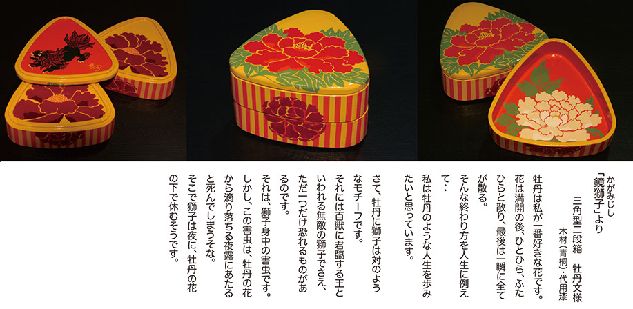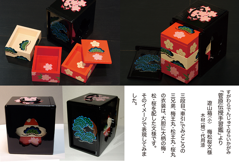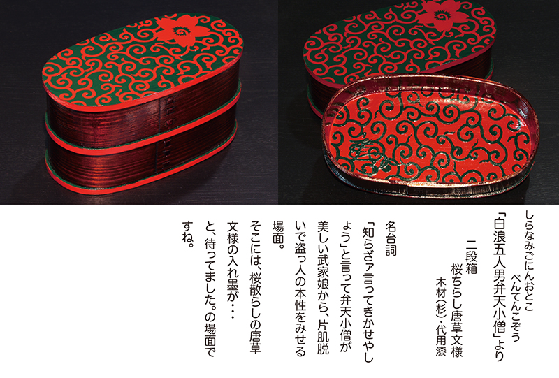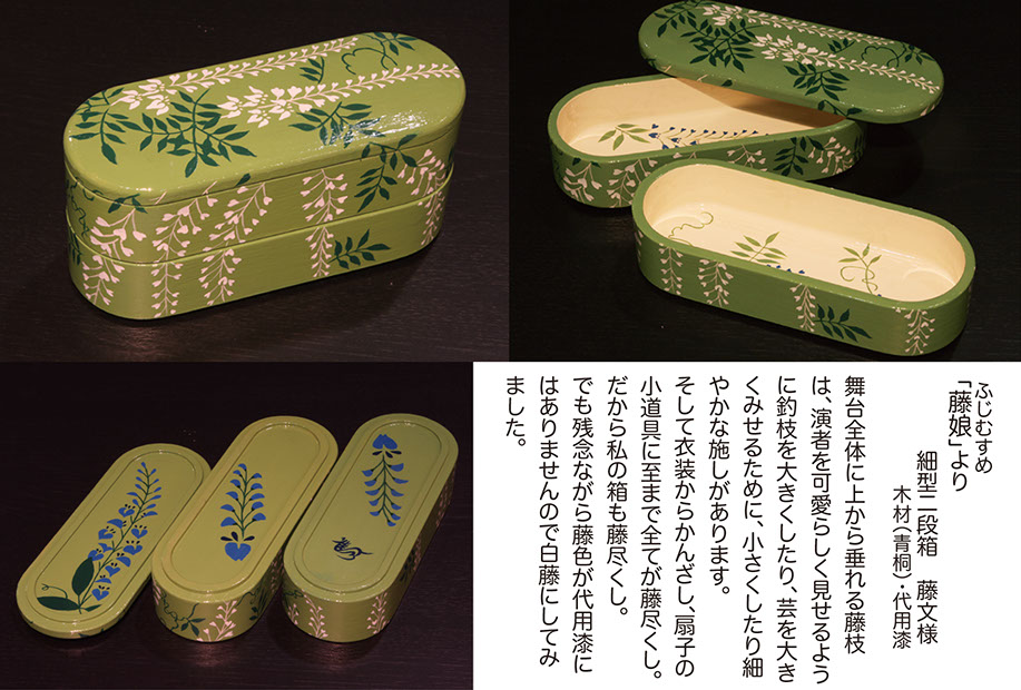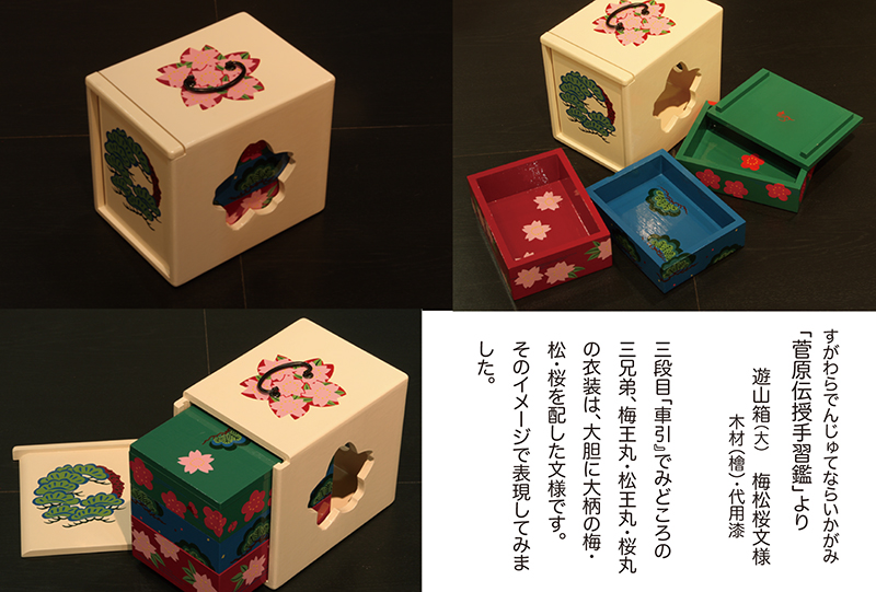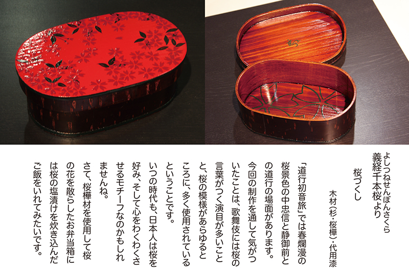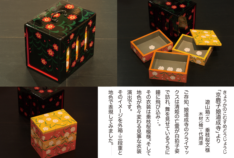 『作家たちの歌舞伎祭り展』にあたって担当のディレクターから、以前手がけていた"下駄"のイメージで弁当箱を制作できないかと意見を頂き「あの”遊山箱”を作ってみよう」と思ったのです。